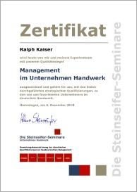 Das Qualifizierungssiegel erhalten die Seminarteilnehmer, die ihre unternehmerische Qualifizierung strategisch durchgeführt und damit eine besondere Qualität im Management im Handwerk und in ihren Unternehmen erreicht haben.
