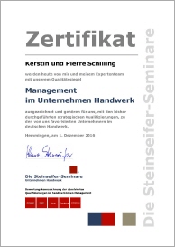 Das Qualifizierungssiegel erhalten die Seminarteilnehmer, die ihre unternehmerische Qualifizierung strategisch durchgeführt und damit eine besondere Qualität im Management im Handwerk und in ihren Unternehmen erreicht haben.
