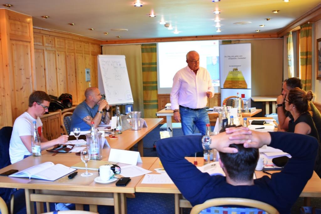 Klaus Steinseifer durchläuft mit seinen SeminarteilnehmerInnen das Kundenprojekt, von der erstklassigen Angebotserstellung über den Auftrag zur Projektvorbereitung, der Projektabwicklung, der Projektnachbearbeitung und der Kundennachbetreuung. Nach dem Auftrag ist schon wieder vor dem Auftrag!