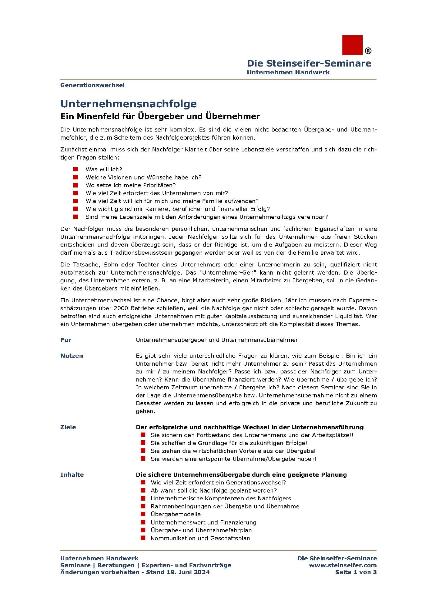 Das Seminar für den Generationswechsel im Handwerk und im Mittelstand