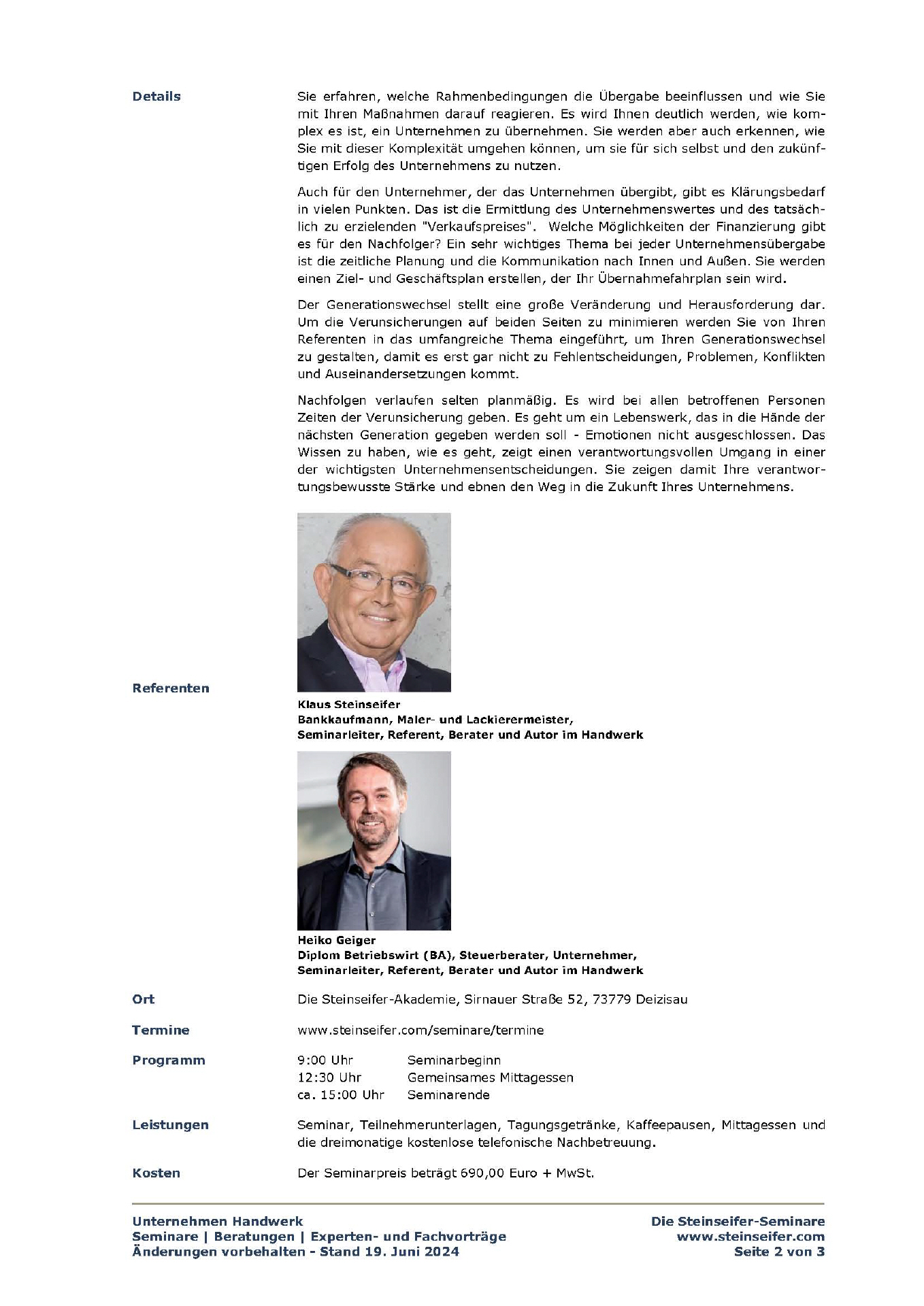 Der Seminartag am 19. Juni 2024 in der Steinseifer-Akademie mit Klaus Steinseifer und Heiko Geiger