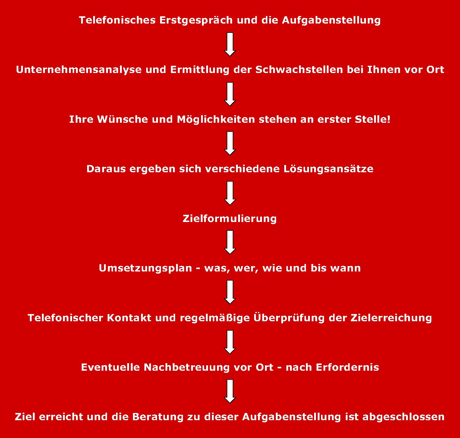 Selbstverständlich muss jeder seinen Weg selbst gehen. Der Berater kann vorschlagen, raten, unterstützen, den Weg zum Ziel aufzeigen und bei der Umsetzung aktiv mithelfen. Entscheidend muss es sein, welchen Nutzen die Beratung tatsächlich langfristig bietet. Dafür muss kein Mensch einen Beratervertrag unterschreiben.