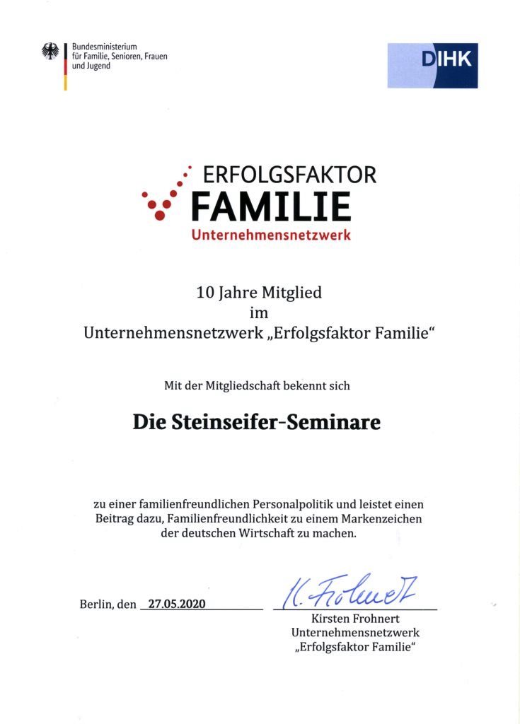 Die Steinseifer-Seminare sind jetzt schon 10 Jahre im Netzwerk "Erfolgsfaktor Familie" aktiv mit dabei.