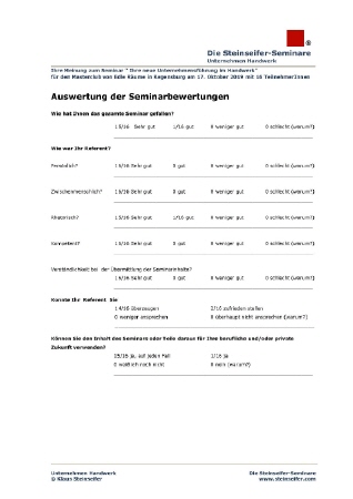 Gut umsetzbar durch die Checklisten und Seminarunterlagen. Ich werde Dein Seminar bei unserem Landesinnungsverband für das Seminarprogramm vorschlagen.
