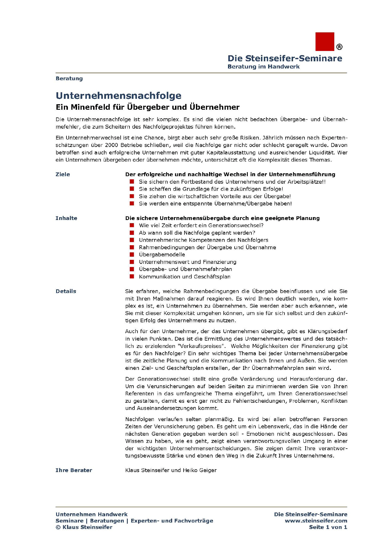 Informationen zur Beratung in der Unternehmensnachfolge