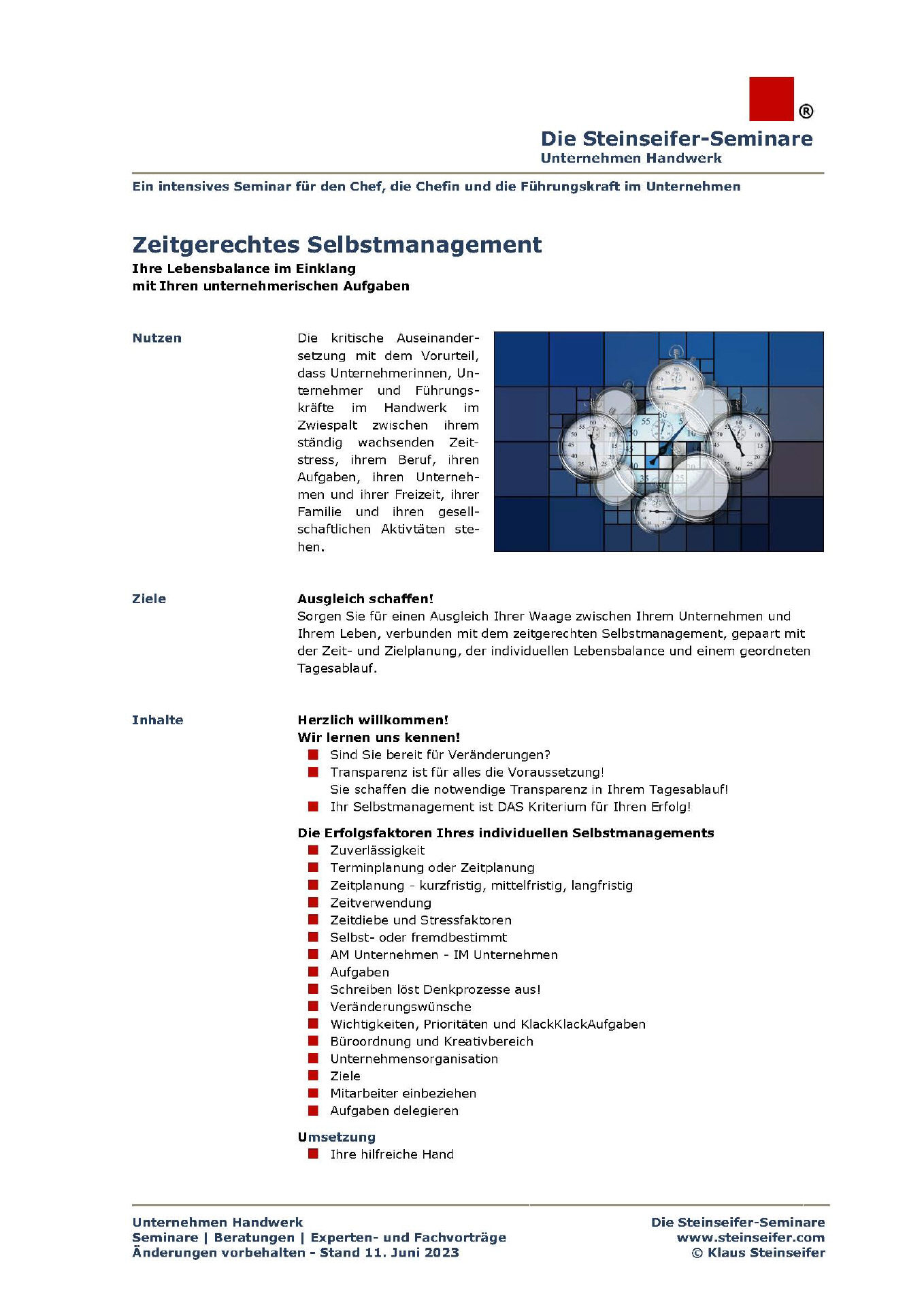 mit dem Vorurteil, dass Unternehmerinnen, Unternehmer und Führungskräfte im Handwerk im Zwiespalt zwischen ihrem ständig wachsenden Zeitstress, ihrem Beruf, ihren Aufgaben, ihren Unternehmen und ihrer Freizeit, ihrer Familie und ihren gesellschaftlichen Aktivtäten stehen.