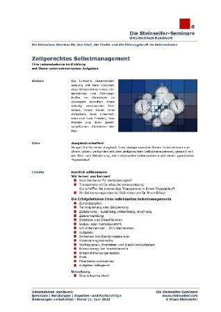 Sorgen Sie für einen Ausgleich Ihrer Waage zwischen Ihrem Unternehmen und Ihrem Leben, verbunden mit dem zeitgerechten Selbstmanagement, gepaart mit der Zeit- und Zielplanung, der individuellen Lebensbalance und einem geordneten Tagesablauf.